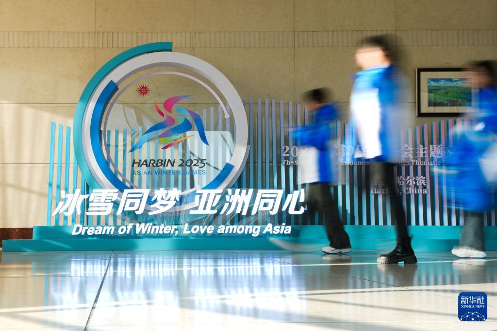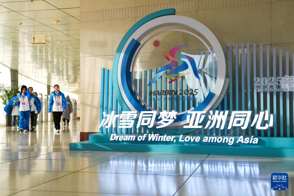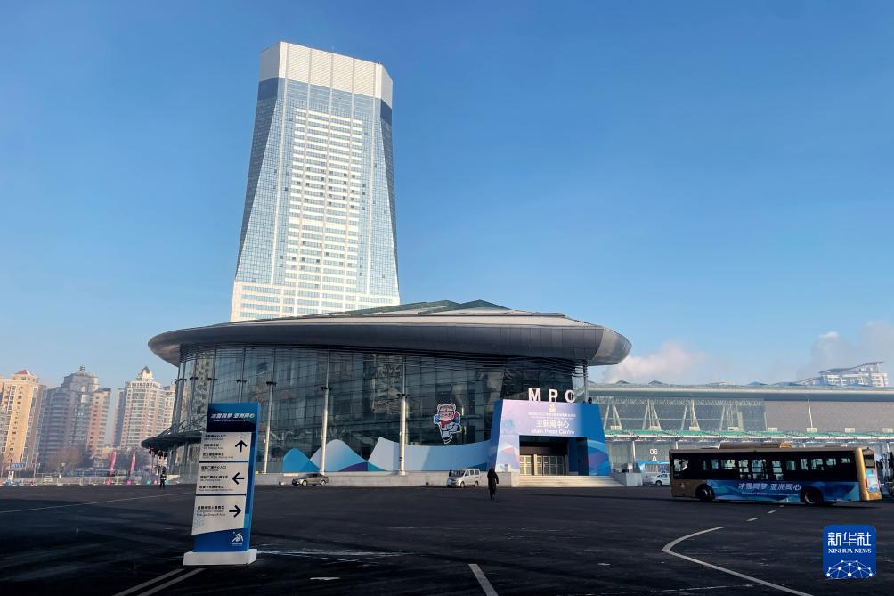 這是2月5日拍攝的第九屆哈爾濱亞冬會主新聞中心外景。