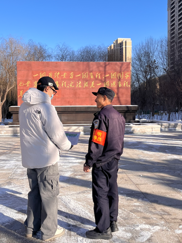 在公園的法治長廊附近,記者見到了文明引導(dǎo)員姚隊。他身穿制服,手持對講機(jī),正在引導(dǎo)游客有序參觀。姚隊表示,文明引導(dǎo)員的任務(wù)就是維護(hù)公園秩序,確保游客安全、文明游園。姚隊還提到,文明引導(dǎo)員不僅是公共秩序的維護(hù)者,也是法治文化的傳播者?!拔覀儠嵝延慰蛺圩o(hù)公園設(shè)施,遵守公共秩序,這些都是法治精神的體現(xiàn)”。