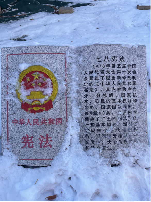 1月28日,農(nóng)歷臘月廿九,大雪過后的滄州憲法主題公園銀裝素裹,靜謐而莊嚴(yán)。記者走進(jìn)公園發(fā)現(xiàn),紅燈籠、法治標(biāo)語、憲法宣傳展板交相輝映,濃濃的新春氛圍撲面而來。