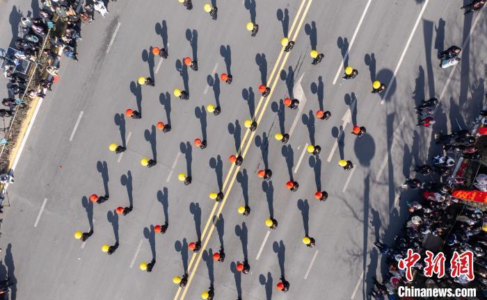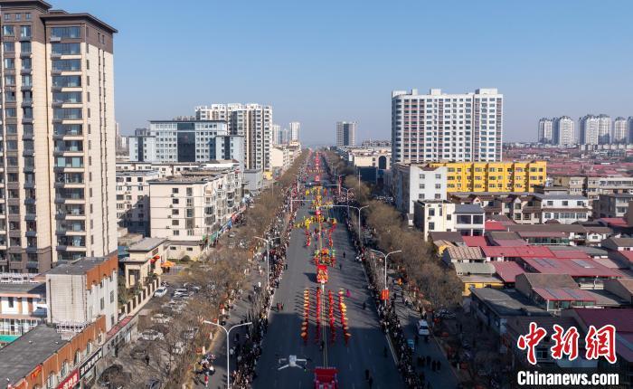 圖為航拍社火巡游現(xiàn)場(chǎng)。 李樹(shù)鋒 攝