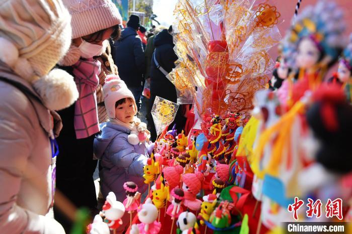 2月9日,一名小朋友在糖畫、面塑攤位前駐足。當(dāng)日,位于青島市市北區(qū)的2025年青島蘿卜·元宵·糖球會(huì)海云庵會(huì)場(chǎng)開(kāi)街,豐富多彩的迎接元宵節(jié)活動(dòng)吸引大量民眾參與。蘿卜·元宵·糖球會(huì)擁有百年歷史,是當(dāng)?shù)刂匾拿袼谆顒?dòng)之一。王海濱 攝