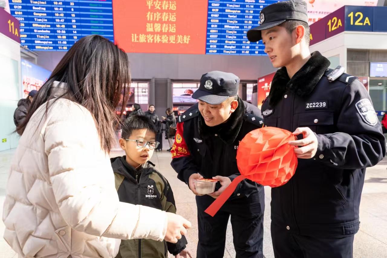 2月12日是農(nóng)歷元宵佳節(jié),北京鐵路公安處北京南站派出所民警走到旅客中間,開展安全出行猜燈謎活動。據(jù)悉,鐵路民警制作的燈謎謎面涵蓋反詐宣傳、乘車安全、平安出行常識等內(nèi)容,并結(jié)合春運出行,提醒旅客旅途中提高安全防范意識。