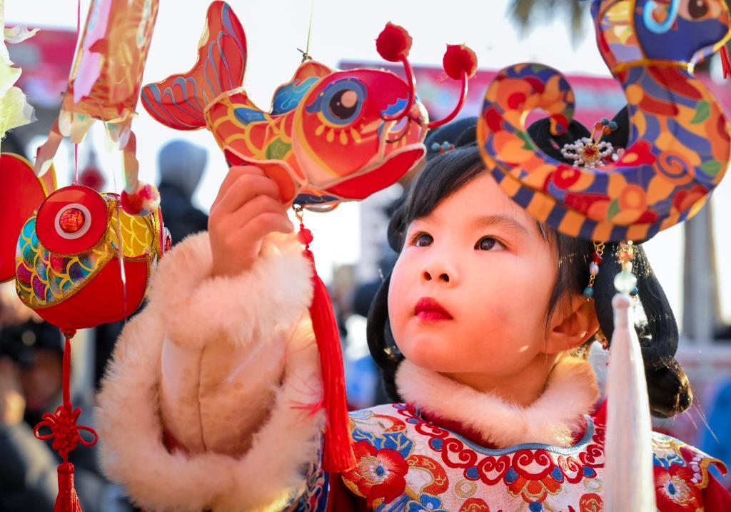 2月9日,一名小朋友在浙江省寧波市寧??h強(qiáng)蛟鎮(zhèn)峽山村迎元宵節(jié)活動中專注賞燈。新華社發(fā)(胡學(xué)軍攝)