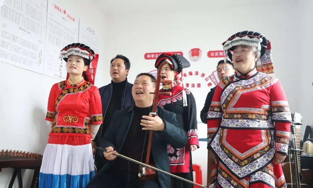 隨著時(shí)間的推移,周禮軍的法治山歌普法活動逐漸在羊場鄉(xiāng)乃至全縣范圍內(nèi)產(chǎn)生了廣泛的影響。2017年,他成立了法治山歌普法演唱團(tuán),之后,周禮軍陸續(xù)改編了《拒絕早婚》《入獄歌》《囚籠》等法治山歌,將普法演唱團(tuán)的成員由1人發(fā)展到2人再到4人最后到6人,率團(tuán)到村寨、學(xué)校演唱586次,教育群體38640人次,唱出了獨(dú)特的山區(qū)法治文化。