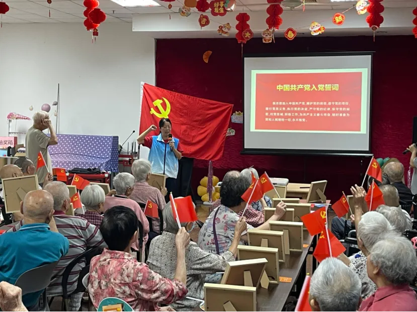 ●銘記光輝,汲取力量:活動伊始,全體黨員和長者們共同觀看了精心準備的黨史短片。短片濃縮了黨波瀾壯闊的104年奮斗歷程,展現(xiàn)了共產(chǎn)黨人矢志不渝的初心使命和改天換地的偉大成就。在黨史光輝的映照下,大家共同追憶崢嶸歲月,感悟信仰力量,為后續(xù)環(huán)節(jié)奠定了深厚的情感與思想基礎(chǔ)。
