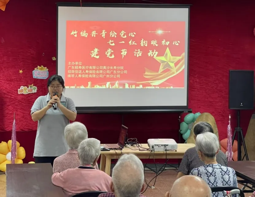 為熱烈慶祝中國共產(chǎn)黨建黨104周年,弘揚尊老敬老傳統(tǒng)美德,踐行金融為民初心,7月1日下午,橫琴人壽廣州黨支部及廣州分公司,聯(lián)合公益合作伙伴招商信諾廣東分公司,共同走進頤壽安養(yǎng)養(yǎng)老院,開展了一場主題鮮明、情意濃濃的“竹編丹青繪黨心,七一紅韻映初心”建黨紀念日主題活動暨“7.8全國保險公眾宣傳日”活動,以公益服務(wù)與紅色教育相結(jié)合的特殊方式為黨的生日獻禮。