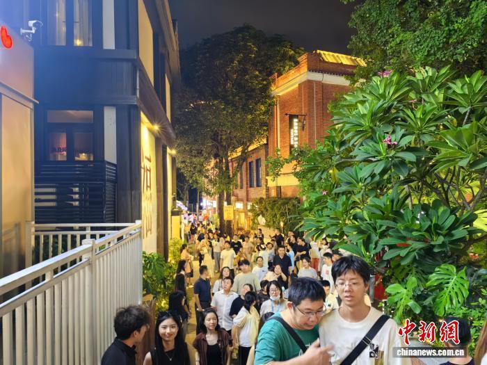 8月23日晚,福州煙臺(tái)山歷史風(fēng)貌區(qū)的街巷內(nèi)游人如織。 中新網(wǎng)記者 閆旭 攝