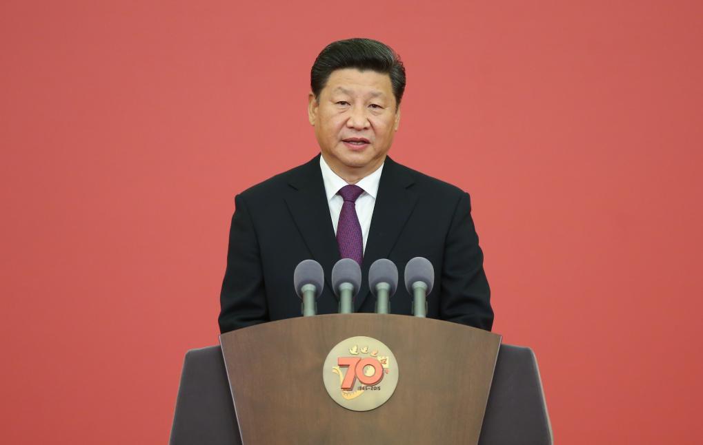 ??2015年9月,中國(guó)人民抗日戰(zhàn)爭(zhēng)勝利70周年紀(jì)念章頒發(fā)儀式在北京人民大會(huì)堂隆重舉行。習(xí)近平總書(shū)記發(fā)表重要講話。新華社記者 龐興雷 攝