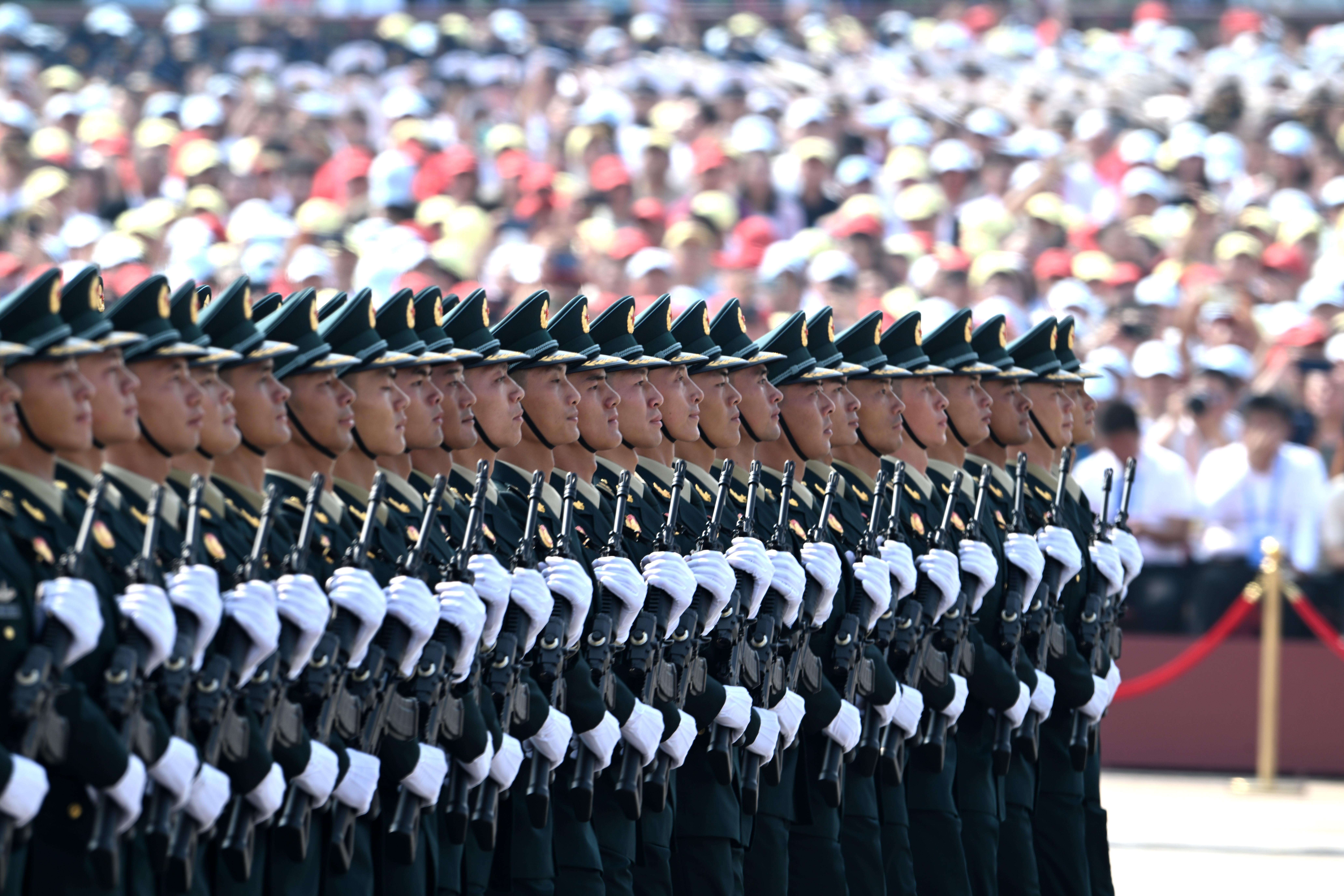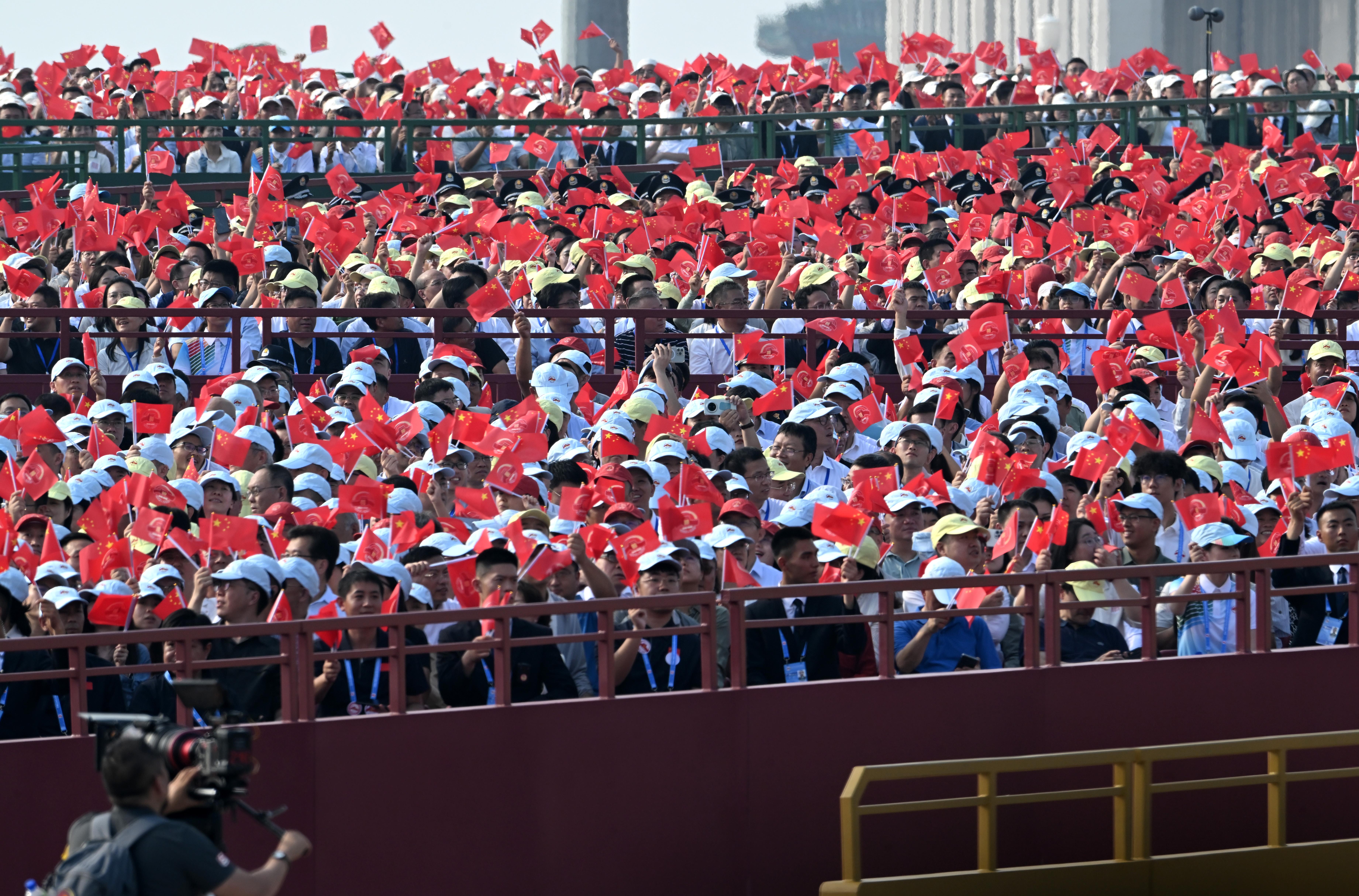 9月3日,紀(jì)念中國人民抗日戰(zhàn)爭暨世界反法西斯戰(zhàn)爭勝利80周年閱兵式在北京隆重舉行。這是天安門廣場舉行升國旗儀式。