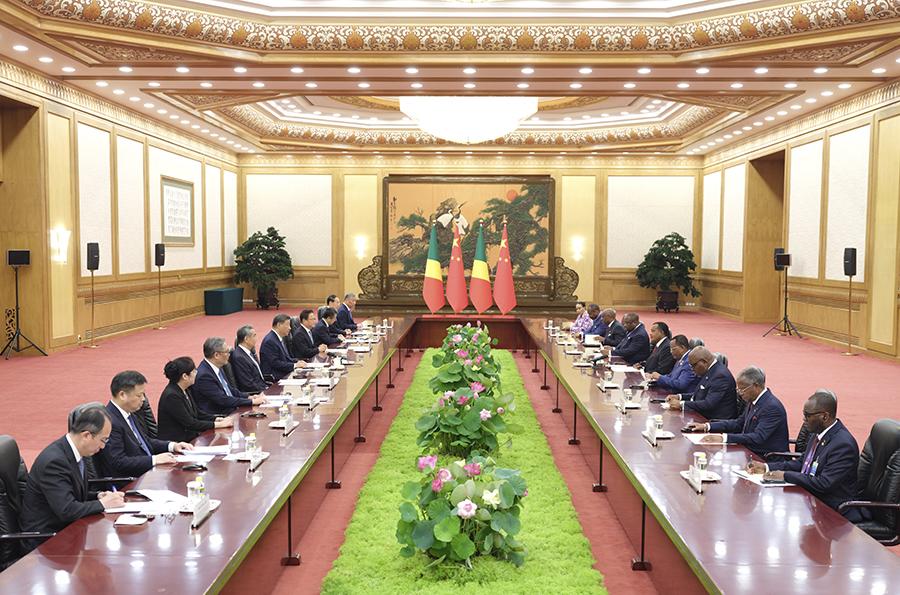 習(xí)近平強調(diào),剛果(布)擔(dān)任中非合作論壇非方共同主席國以來,同中方一道積極推動北京峰會成果落實,取得可喜成績。中方愿同非方共同實施好“十大伙伴行動”,打造綠色產(chǎn)業(yè)、電子商務(wù)和支付、科技、人工智能等新增長點,推動中非合作提質(zhì)升級。當(dāng)前國際形勢變亂交織,中國和非洲作為全球南方重要成員,要肩負(fù)起捍衛(wèi)國際公平正義、維護世界和平、促進共同發(fā)展的歷史責(zé)任,攜手推動構(gòu)建人類命運共同體。