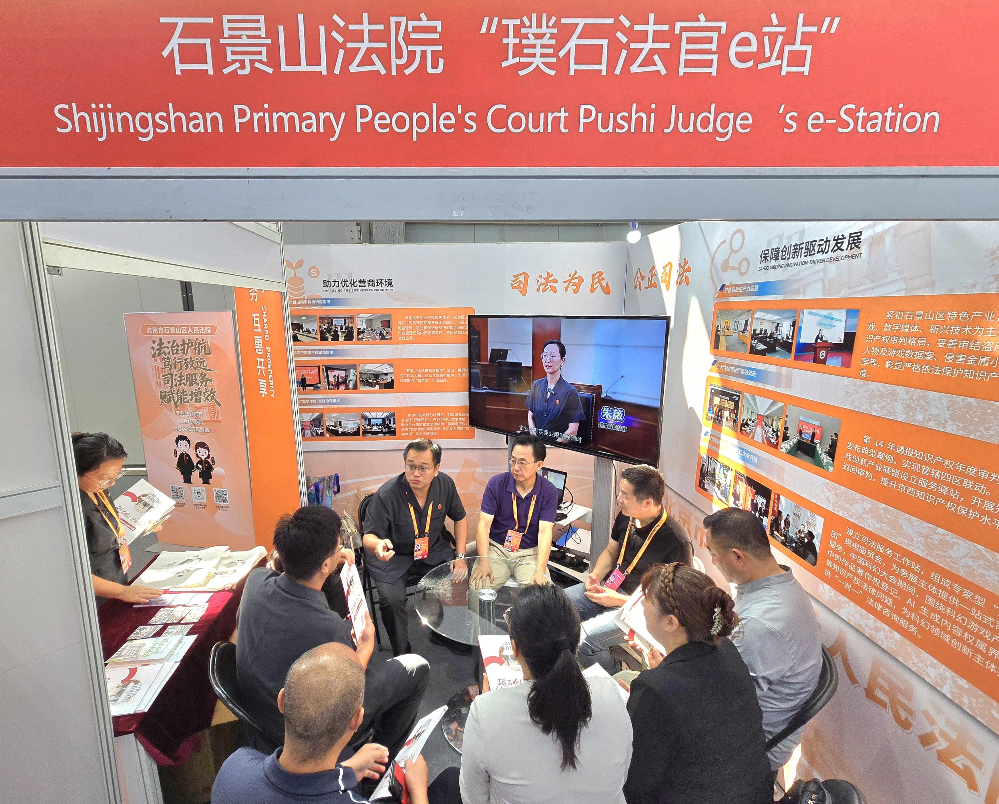 9月10日,以“數(shù)智領(lǐng)航 服貿(mào)換新”為主題的2025年中國國際服務(wù)貿(mào)易交易會在北京市首鋼園區(qū)盛大開幕。作為區(qū)域司法服務(wù)保障的主力軍,北京市石景山區(qū)法院在服貿(mào)會現(xiàn)場設(shè)立“璞石法官e站”,為參會主體提供一站式、零距離的法治服務(wù)。