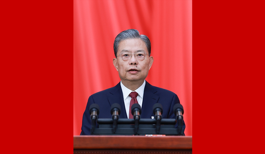 受全國人大常委會委托,趙樂際委員長向大會報告全國人大常委會工作……