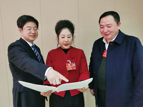 一月三日,湖北省鄂州市政協(xié)九屆一次會議預備會議間隙,經(jīng)濟界別的三位委員就加快推進臨空產(chǎn)業(yè)高質(zhì)量發(fā)展的提案協(xié)商討論。吳建華 攝