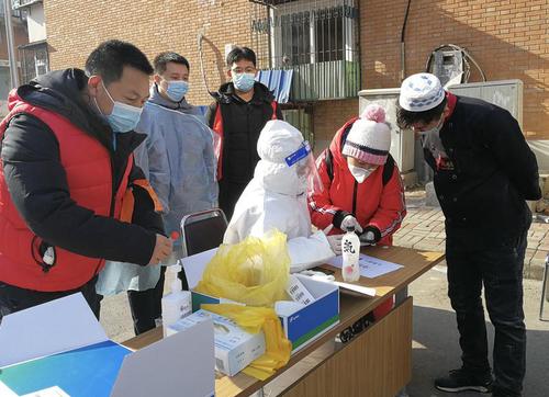 1月12日,天津市南開區(qū)政協(xié)針對突發(fā)疫情向各參加單位和委員發(fā)出倡議。廣大委員積極響應(yīng)號召,立足本崗參與抗疫:有的堅守抗疫一線,有的捐贈防疫物資,有的提交意見建議,有的參與志愿服務(wù)……為助力打贏疫情阻擊戰(zhàn)貢獻政協(xié)智慧力量,展現(xiàn)了委員責(zé)任擔(dān)當(dāng)。圖為天津市南開區(qū)政協(xié)委員在社區(qū)核酸檢測采樣點參與志愿服務(wù)。(劉穎 李寧馨 攝)