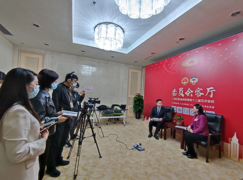 在廣西壯族自治區(qū)政協(xié)十二屆五次會議期間,人民政協(xié)報(bào)·人民政協(xié)網(wǎng)在會場外搭建“委員會客廳”,對委員進(jìn)行訪談。委員們紛紛通過網(wǎng)絡(luò)視頻方式發(fā)出政協(xié)好聲音。 肖亮升 攝
