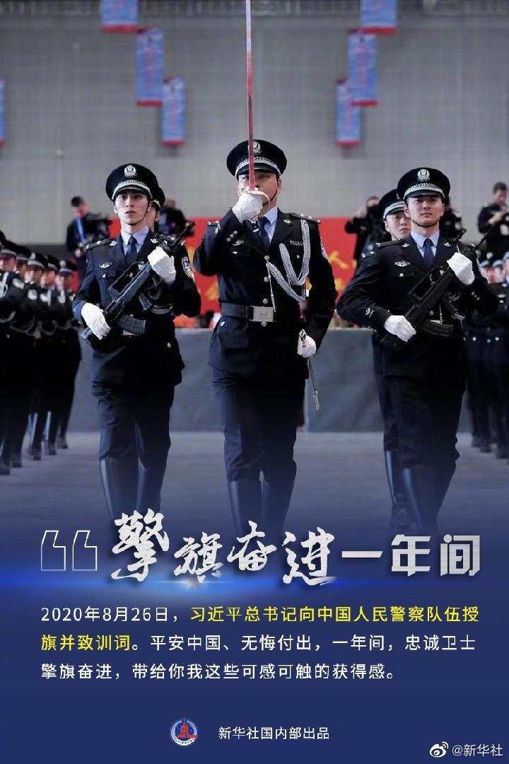 2020年8月26日,習(xí)近平總書記向中國(guó)人民警察隊(duì)伍授旗并致訓(xùn)詞。平安中國(guó),無(wú)悔付出。一年來(lái),全國(guó)公安機(jī)關(guān)的忠誠(chéng)衛(wèi)士擎旗前進(jìn),在增強(qiáng)人民群眾獲得感、幸福感、安全感的道路上取得了哪些新成績(jī)?