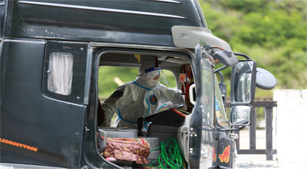 隨著吉隆口岸外貿(mào)企業(yè)復(fù)工復(fù)產(chǎn),口岸逐步恢復(fù)了昔日繁忙景象。連日來,一輛輛載滿貨物的貨車經(jīng)吉隆出入境邊防檢查站執(zhí)勤移民管理警察全面檢查,完成查驗(yàn)手續(xù)辦理后,順利有序通關(guān)。