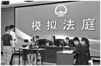 5月17日,山東省棗莊市市中區(qū)人民法院在當(dāng)?shù)貙嶒炐W(xué)開展模擬法庭活動,進一步增強學(xué)生的法治觀念和守法意識。圖為模擬法庭活動現(xiàn)場。