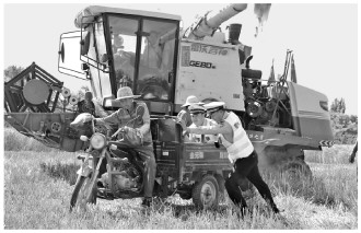 為保障“三夏”期間轄區(qū)道路交通安全暢通,陜西省渭南市澄城縣交警大隊來到田間地頭以及公路沿線村莊,加大對交通安全知識的宣傳力度,同時幫助孤寡老人、貧困戶搶收小麥,全力守護群眾的“糧袋子”。圖為民警協(xié)助村民搶收小麥。