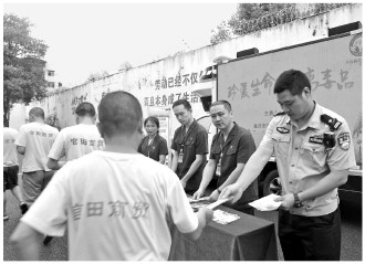 在“6·26”國(guó)際禁毒日即將來(lái)臨之際,重慶市第二中級(jí)人民法院帶著重慶法院“車(chē)載便民法庭”和一場(chǎng)涉及販賣(mài)、運(yùn)輸毒品罪二審案件,走進(jìn)萬(wàn)州區(qū)強(qiáng)制隔離戒毒所,開(kāi)展“巡回審判 禁毒同行”系列宣傳教育活動(dòng)。圖為法院工作人員向戒毒人員發(fā)放禁毒宣傳資料。
