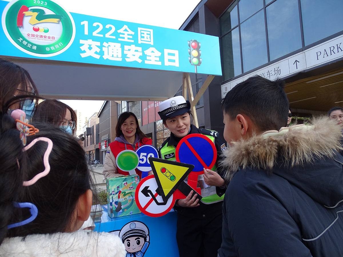 12月2日,安徽省蕪湖市公安局交警支隊鏡湖大隊組織民警開展“文明交通 你我同行”主題交通安全宣傳活動,進一步提升群眾交通安全意識。圖為民警向群眾講解交通安全標志。