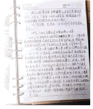 圖③ 孔笛在日記本上記錄當(dāng)天走訪居民的情況。