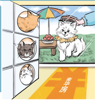 在了解寄養(yǎng)房間的規(guī)格后,她更加震驚:標(biāo)準(zhǔn)間就是一個寵物柜,一大排柜子排在一起,空間不是很大。當(dāng)她和商家說寵物平時是放養(yǎng)的后,商家建議她用最豪華的寵物柜,每天有3次半小時的放養(yǎng)“遛彎”時間,貓糧、貓罐頭、貓砂等生活用品價格另算,洗澡、美容等服務(wù)價格也不包括在內(nèi)。