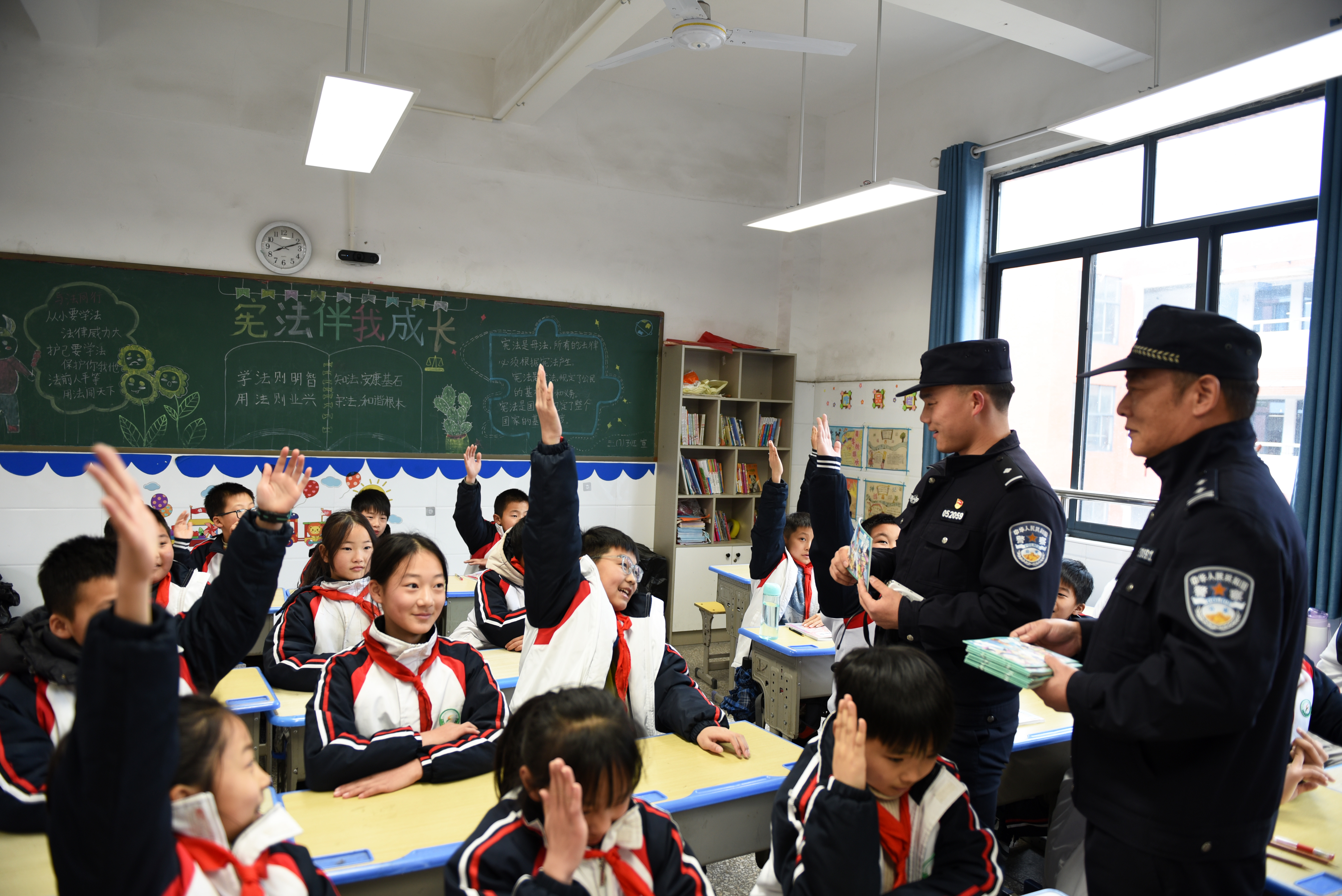 龍年春季開學(xué)伊始,江西省分宜縣公安局組織民警走進(jìn)轄區(qū)校園,為學(xué)生普及交通安全、校園欺凌、抵制毒品等相關(guān)法律知識。圖為2月26日,民警為分宜四小學(xué)生上安全教育“開學(xué)第一課”。
