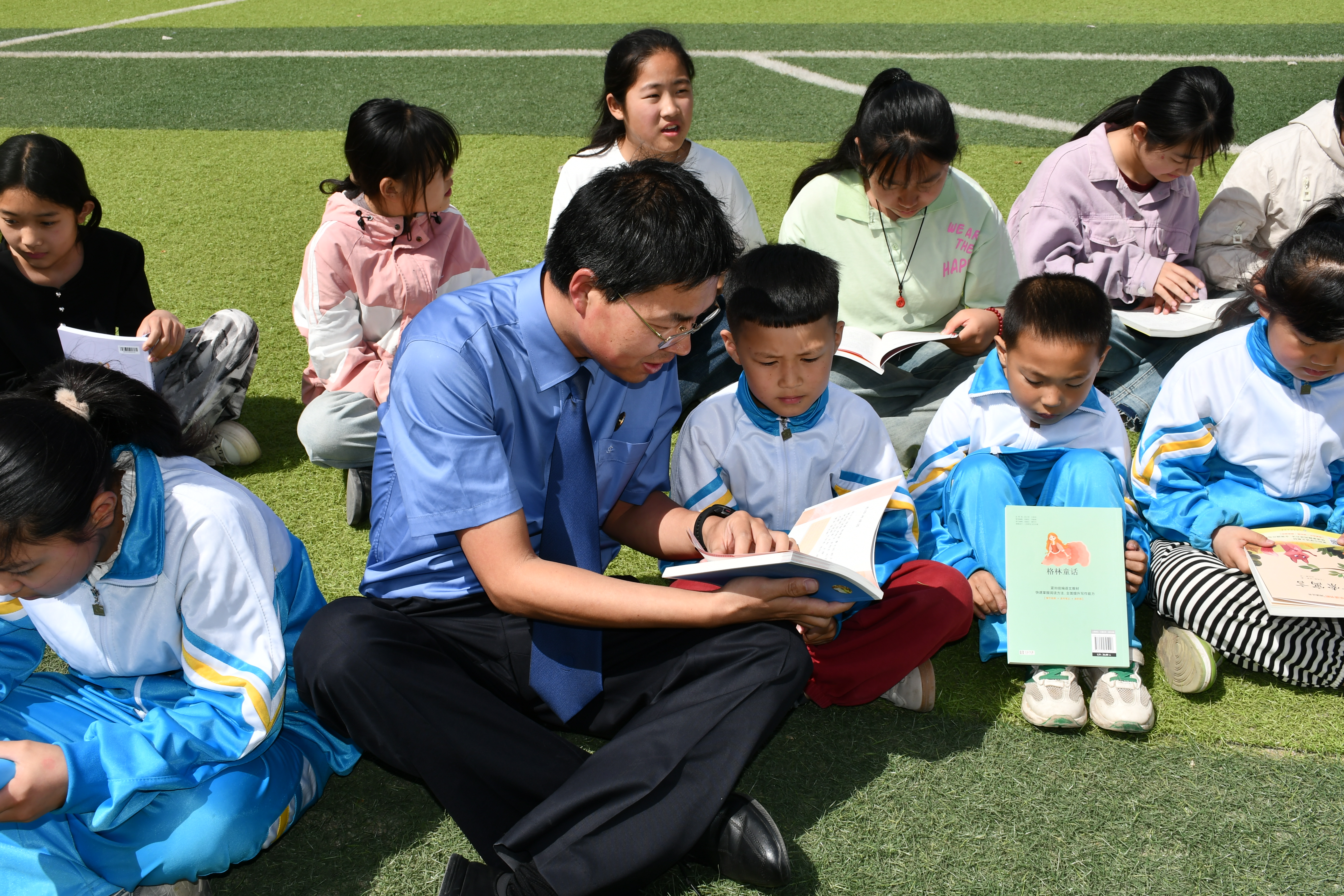 4月23日,河北省邯鄲市廣平縣人民檢察院干警走進(jìn)平固店鎮(zhèn)中心小學(xué)開展“檢愛傳校園 書香潤童年”讀書分享活動。圖為干警帶領(lǐng)學(xué)生們認(rèn)真閱讀精心挑選的圖書。