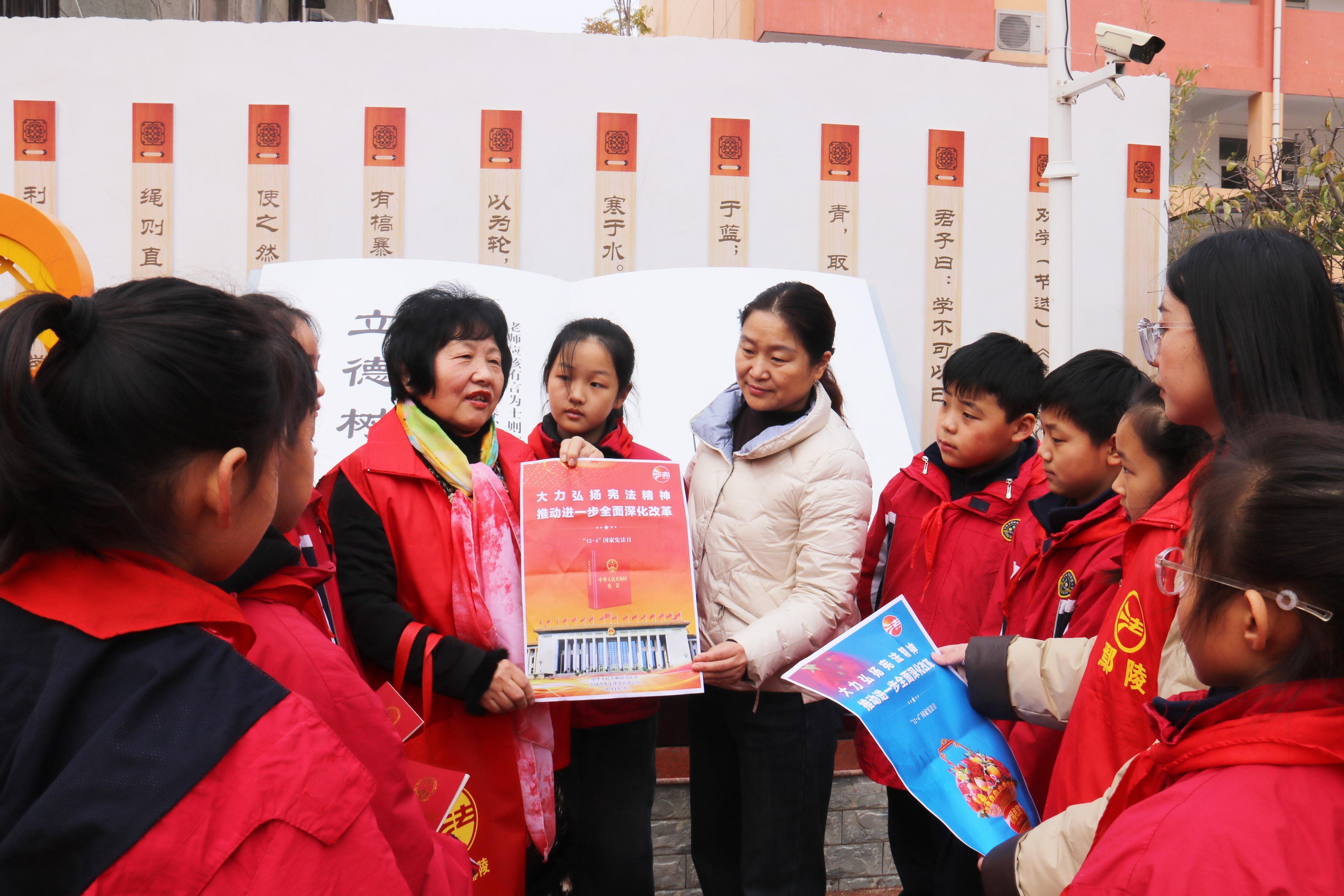 12月3日,河南省鄢陵縣司法局聯(lián)合縣關(guān)工委組織普法志愿者走進轄區(qū)鄢陵縣實驗小學(xué),開展憲法知識進校園活動。圖為活動現(xiàn)場。