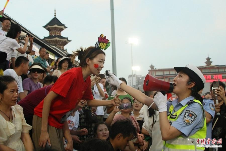 7月1日,貴州省公安廳交通管理局聯合黔東南苗族侗族自治州、榕江縣交管部門組織民警輔警走進榕江縣超燃“村超”現場,開展“文明觀賽,平安回家”交通安全文化建設主題宣傳教育活動。(張靜)