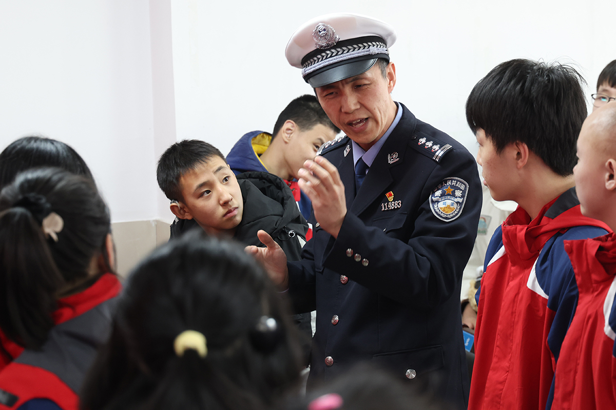 3月20日,遼寧省沈陽(yáng)市公安局交通警察局大東大隊(duì)民警在聾啞學(xué)校用手語(yǔ)講解交通安全知識(shí),并與同學(xué)們互動(dòng)交流。
