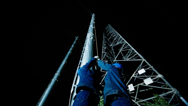 10月21日凌晨4時(shí)10分,在新建的河南省平頂山至漯河、周口高速鐵路電力線路遷改工程220千伏Ⅱ英普線停電施工現(xiàn)場(chǎng),漯河市供電公司作業(yè)人員正在進(jìn)行跨越京廣高鐵導(dǎo)線展放工作。