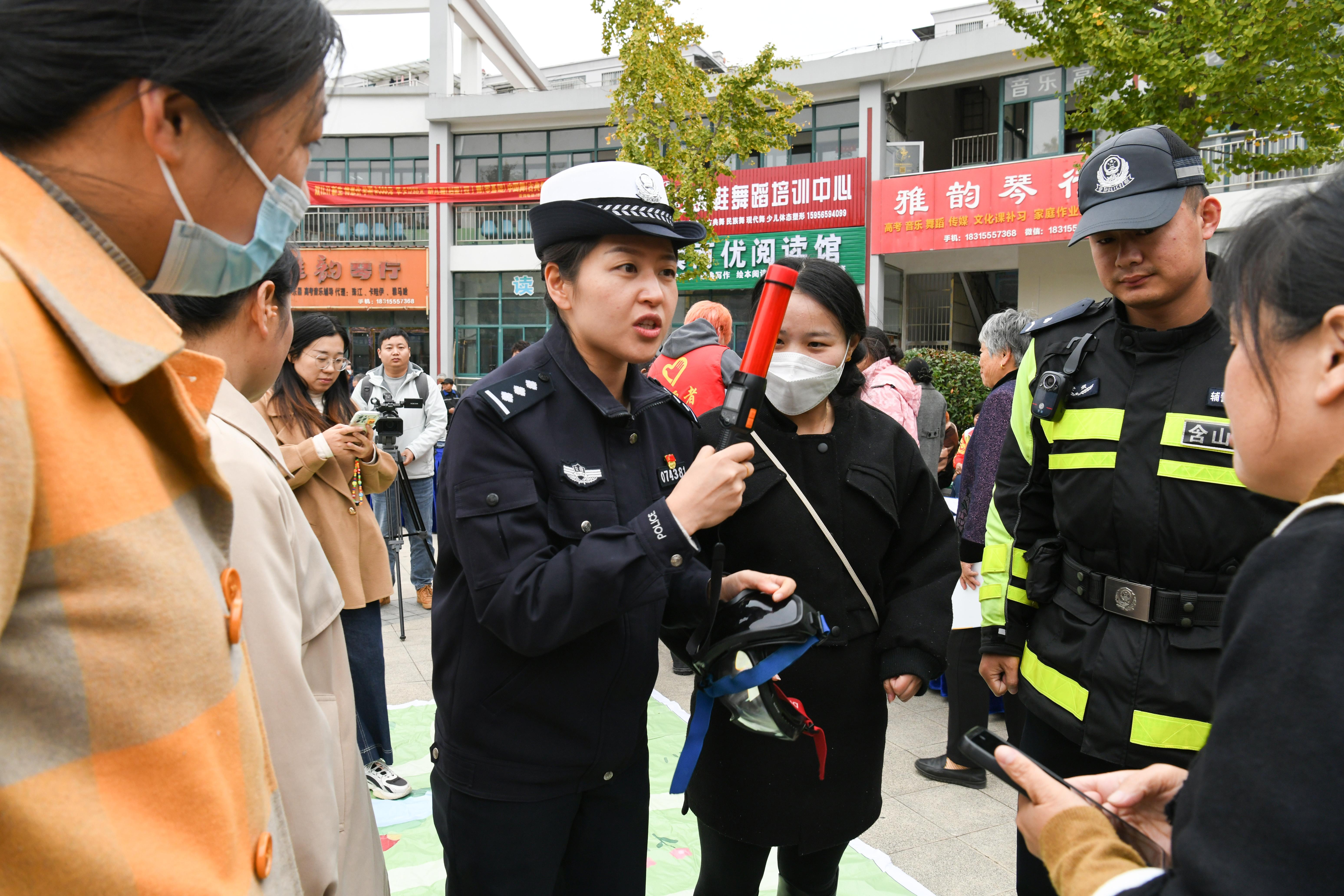 11月19日,安徽省馬鞍山市含山縣公安局交管大隊民警走進環(huán)峰社區(qū)開展交通安全宣傳活動。