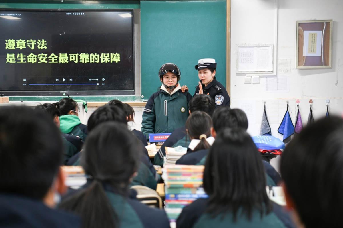2月24日,安徽省馬鞍山市含山縣公安局環(huán)峰派出所聯(lián)合交管大隊組織民警走進含山第二中學(xué),為學(xué)生送去一堂精彩的法治課。