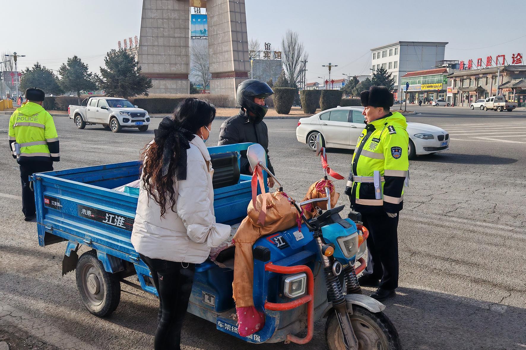 3月9日,內(nèi)蒙古巴彥淖爾市公安局交管支隊烏拉特前旗大隊執(zhí)勤民輔警對存在違法行為的駕駛員進(jìn)行現(xiàn)場糾“違”。