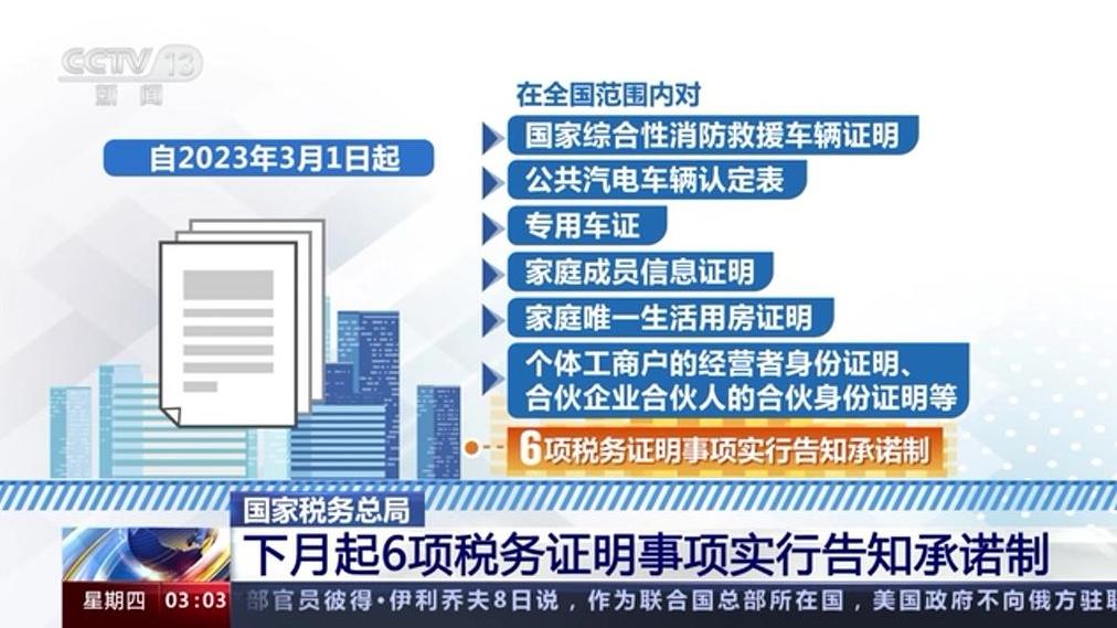 國家稅務(wù)總局 下月起6項稅務(wù)證明事項實行告知承諾制