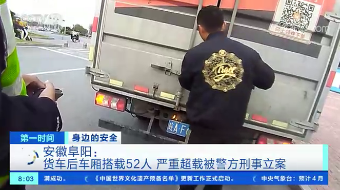 安徽阜陽:貨車后車廂搭載52人 嚴重超載被警方刑事立案