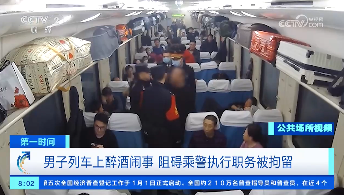 男子列車上醉酒鬧事 阻礙乘警執(zhí)行職務被拘留