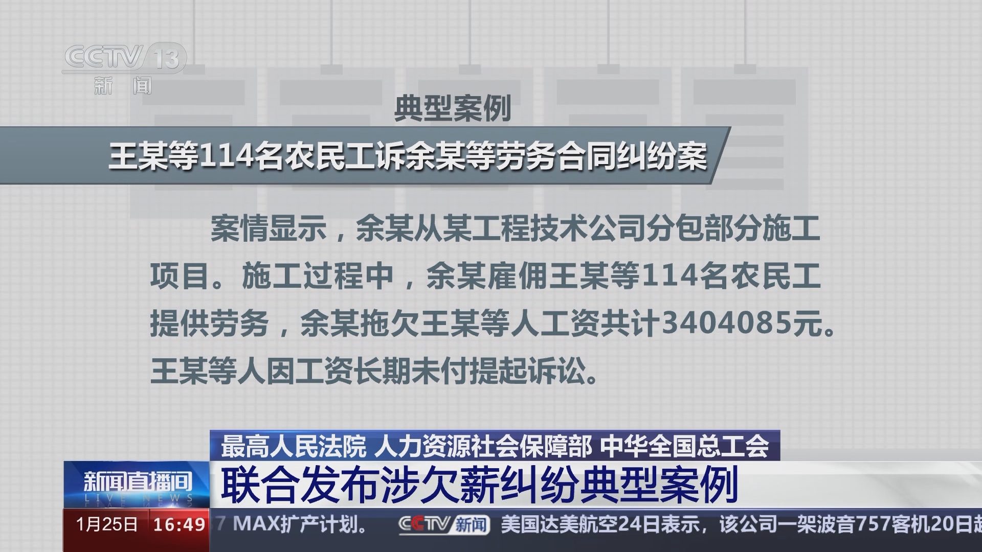 最高人民法院 人力資源社會保障部 中華全國總工會 聯(lián)合發(fā)布涉欠薪糾紛典型案例