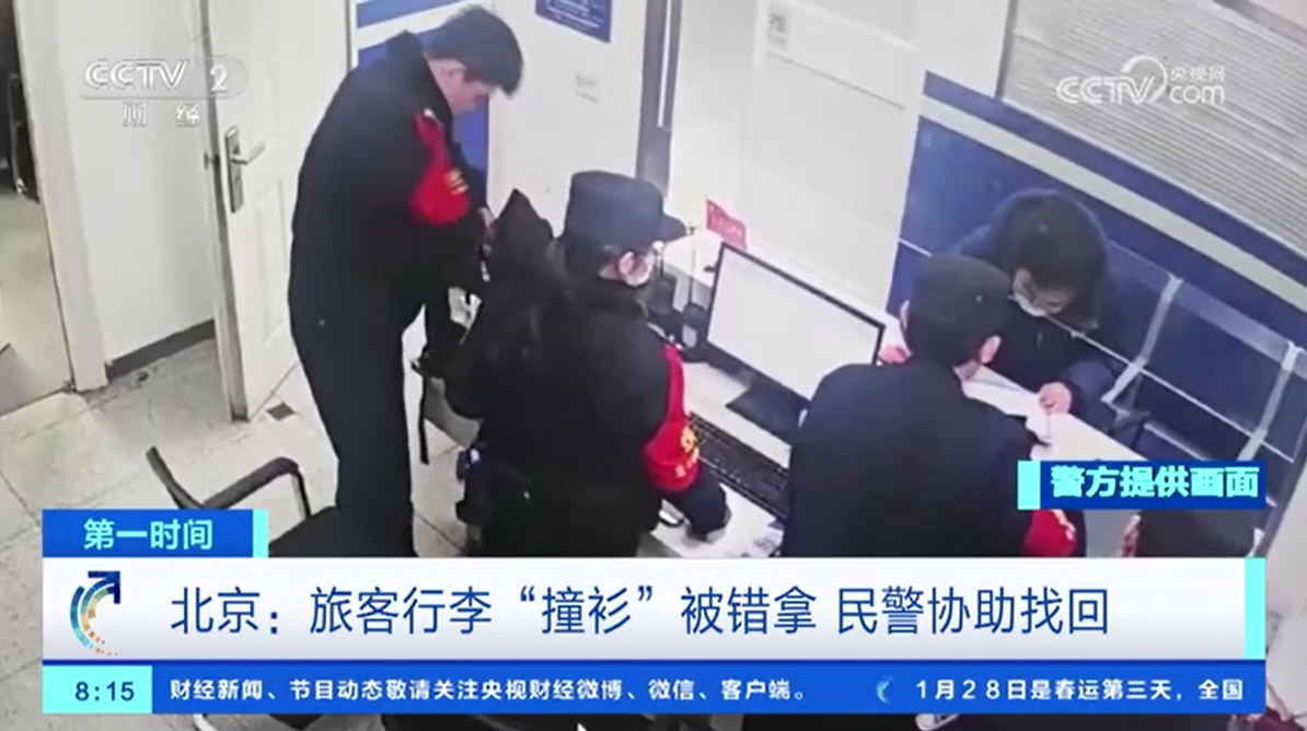 北京:旅客行李“撞衫”被錯拿 民警協(xié)助找回