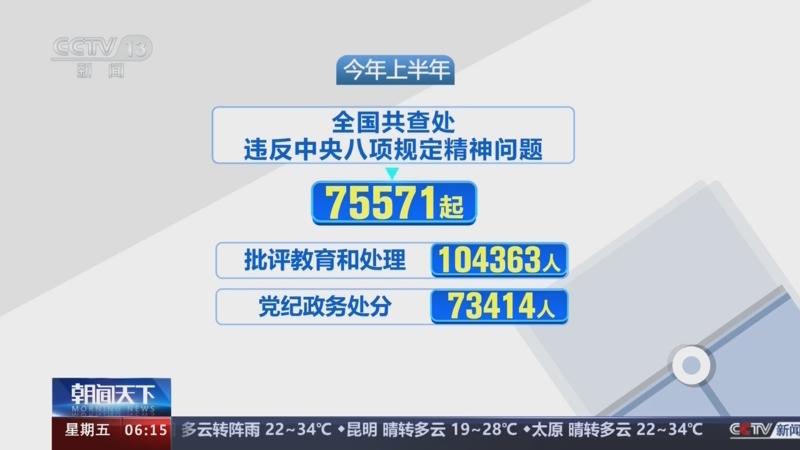 中央紀委國家監(jiān)委 6月查處違反八項規(guī)定精神問題23110起