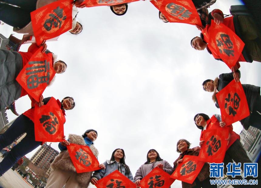 1月8日,在江西省贛州市全南縣河邊街公園,市民展示收到的“福”字。(新華網(wǎng)發(fā) 尹其奇 攝)