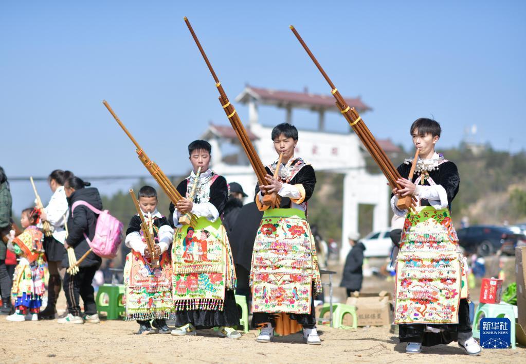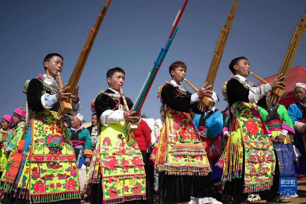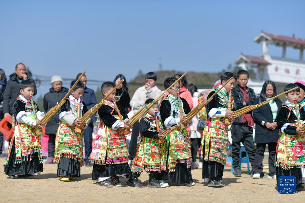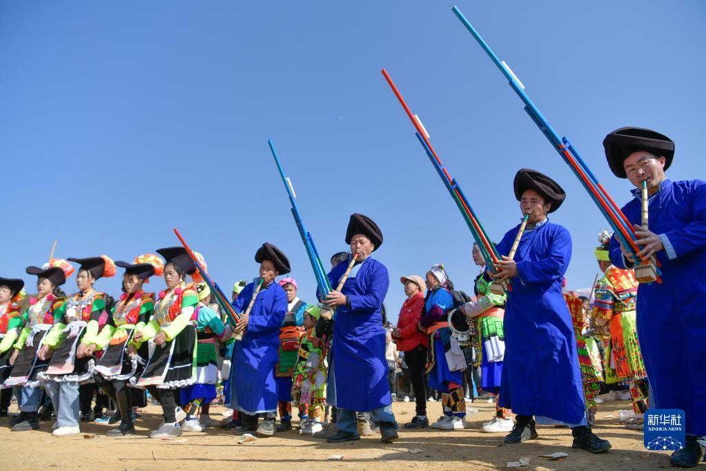 1月29日,苗族群眾在中排村參加“跳月”活動。新華社發(fā)(張暉攝)