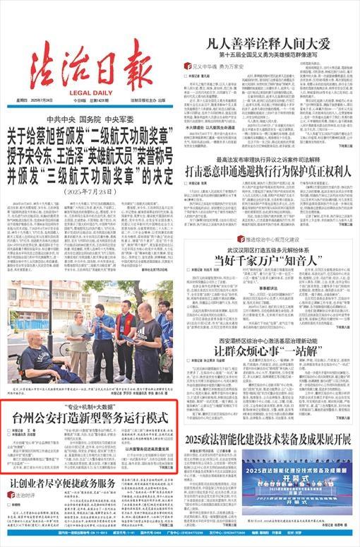 臺州市副市長、公安局局長馬堅斌告訴《法治日報》記者,近年來,臺州公安堅決扛起“防風(fēng)險、保安全、護(hù)穩(wěn)定、促發(fā)展”主責(zé)主業(yè),緊緊圍繞公安工作現(xiàn)代化主題主線,以“共富、共治、生態(tài)”三大警務(wù)建設(shè)為主抓手,大力推進(jìn)改革創(chuàng)優(yōu)、重點攻堅,不斷豐富提升公安機關(guān)新質(zhì)戰(zhàn)斗力,全力支撐和服務(wù)臺州奮進(jìn)“三高三新”(推動高質(zhì)量發(fā)展、打造高能級城市、促進(jìn)高水平共富,在現(xiàn)代化建設(shè)新征程上再創(chuàng)新輝煌再上新臺階)邁出堅實步伐。