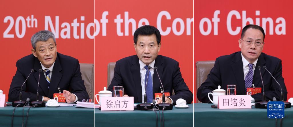 10月17日,中國共產(chǎn)黨第二十次全國代表大會新聞中心舉行記者招待會,請中央紀(jì)委副書記、國家監(jiān)委副主任肖培,中央組織部副部長徐啟方,中央政策研究室副主任田培炎介紹堅定不移全面從嚴治黨,深入推進新時代黨的建設(shè)新的偉大工程有關(guān)情況,并回答記者提問(拼版照片)。