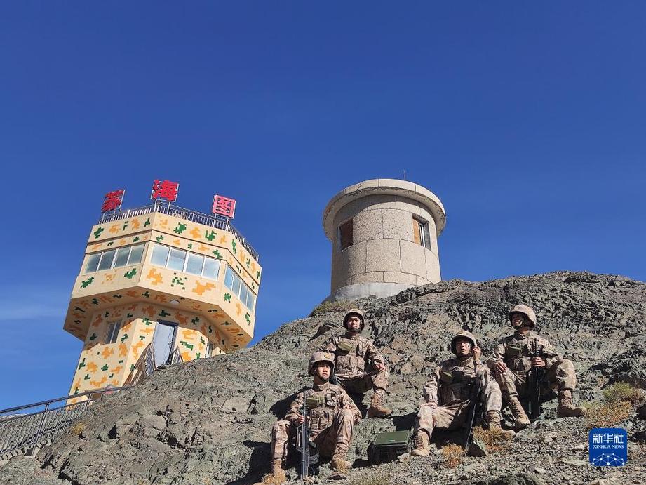 10月16日,新疆軍區(qū)蘇海圖哨所官兵利用廣播收聽中國共產(chǎn)黨第二十次全國代表大會開幕會。新華社發(fā)(何凱航 攝)