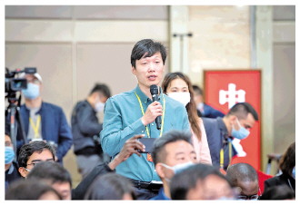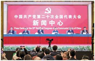 10月19日,黨的二十大新聞中心舉行記者招待會。圖為本報記者提問。 本報記者 王建軍 攝