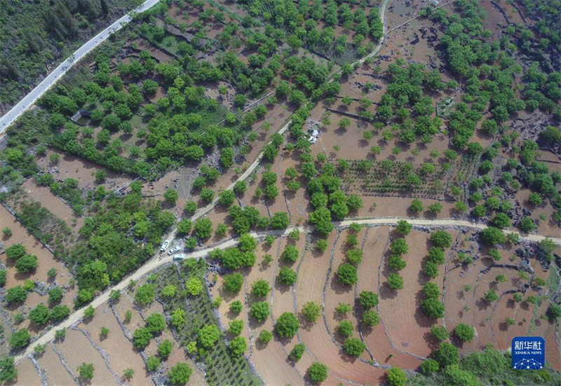 這是云南西疇縣蚌谷鄉(xiāng)木者村的果園(2019年4月17日攝,無人機(jī)照片)。新華社記者 楊宗友 攝