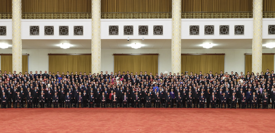 10月23日下午,中共中央總書記、國家主席、中央軍委主席習近平等領導同志在北京人民大會堂親切會見出席黨的二十大代表、特邀代表和列席人員,并同大家合影留念。